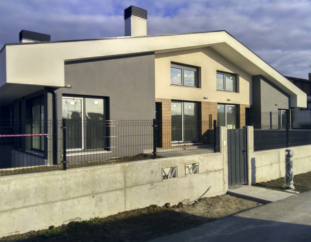 Se han proyectado 8 viviendas adosadas en cruz en dos solares de 900 m2 cada con una forma tradicional pero con un toque moderno a su vez.